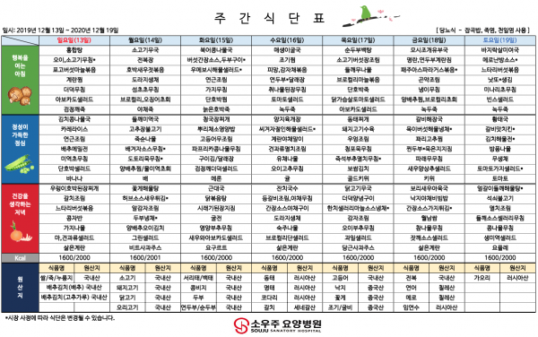 홈 > 고객 지원 > 주간 식단표