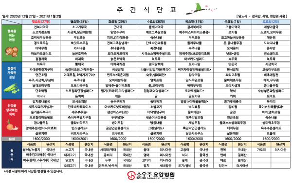 홈 > 고객 지원 > 주간 식단표