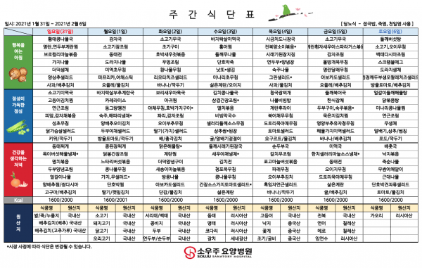 홈 > 고객 지원 > 주간 식단표