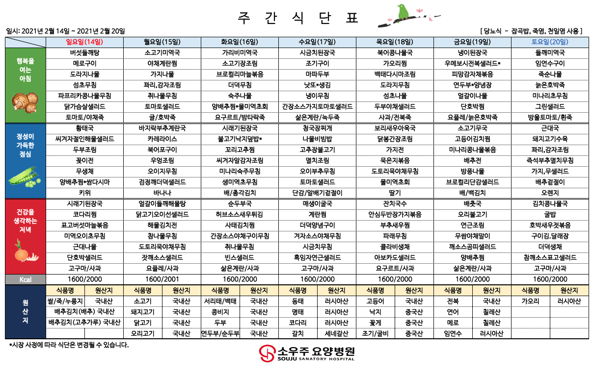 홈 > 고객 지원 > 주간 식단표
